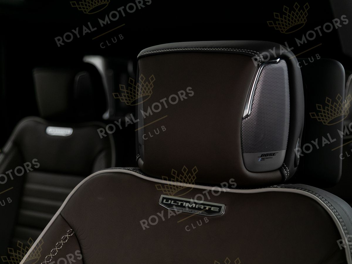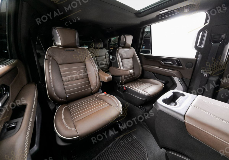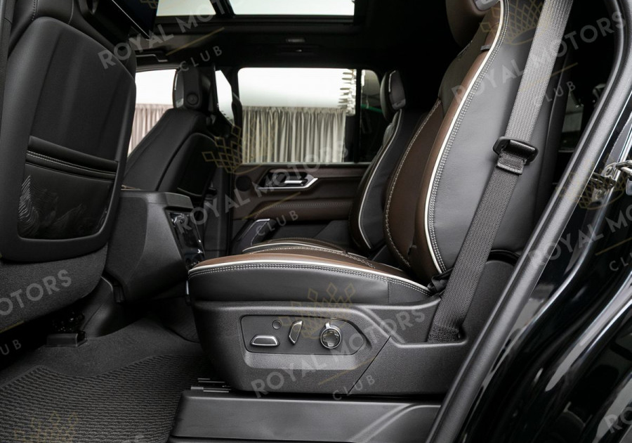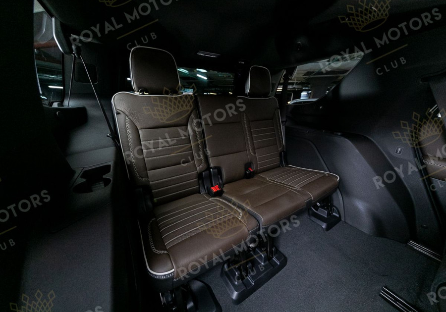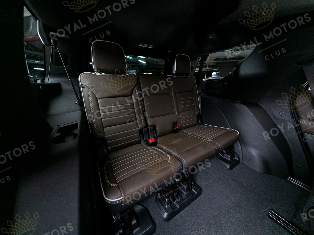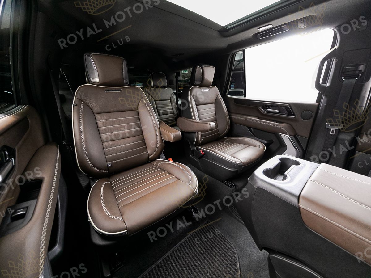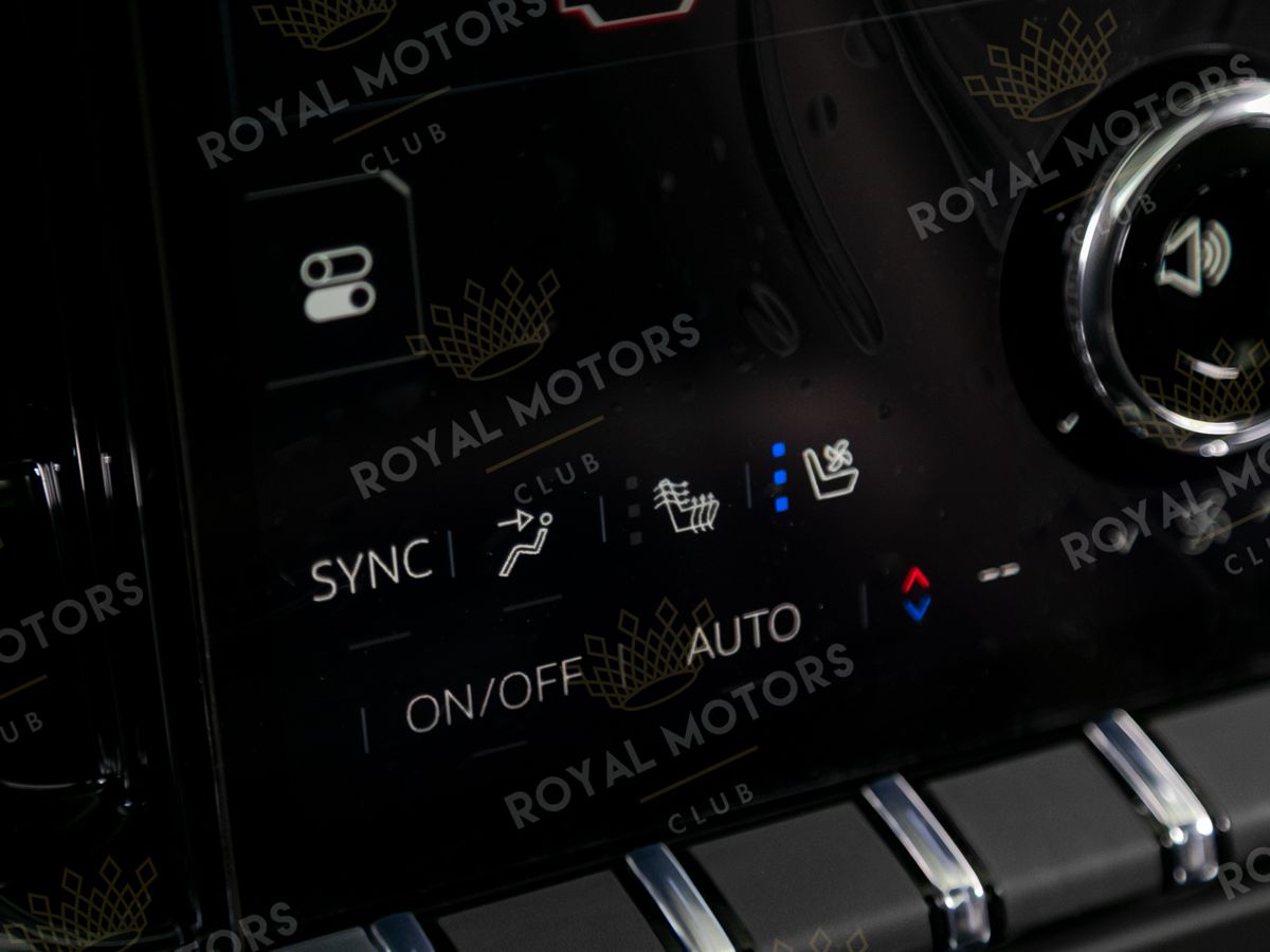 Комплектация оснащена выдвижными порогами с эл.приводом, пневматической подвеской. мониторами в спинках передних сидений, системой Super Cruise, массажем/вентиляцией сидений, камерами с обзором 360, панорамой, проекцией, колёсными дисками Denali Ultimate R24 и премиальной аудиосистемой Bose Performance Series.