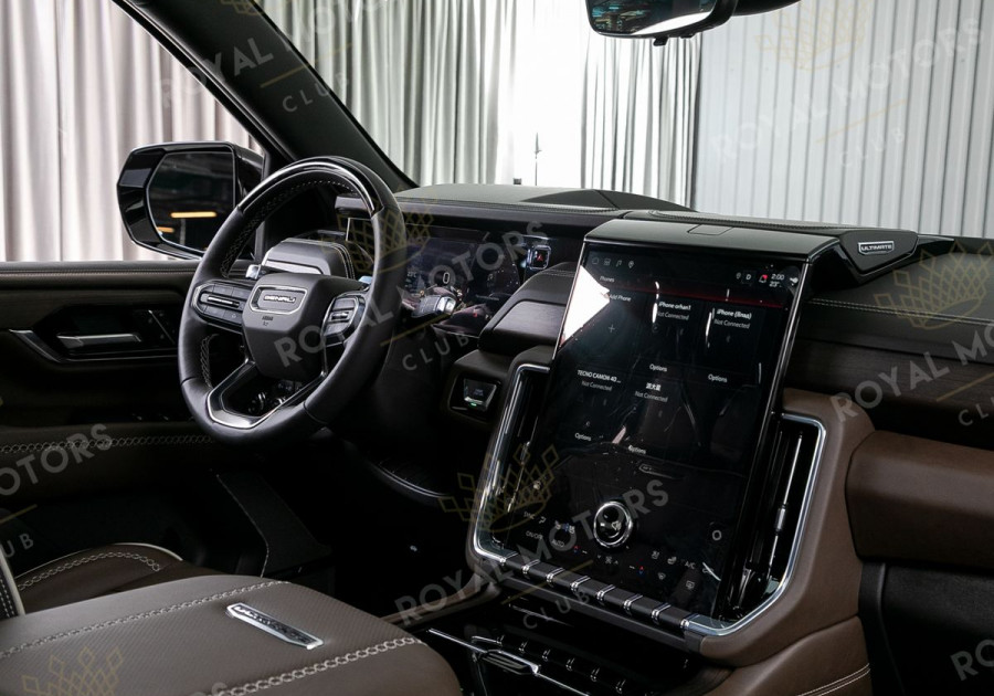 Инженеры GMC переработали переднюю панель. Теперь она выглядит более современно и эргономично. Водительский дисплей также получил обновление, сохранив знакомую форму, но с улучшенной графикой и функциональностью. Несмотря на цифровизацию, модель сохранила ряд физических кнопок для часто используемых функций, что делает управление автомобилем удобным и интуитивно понятным.
