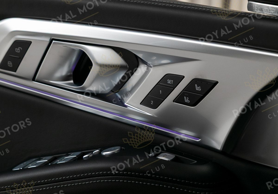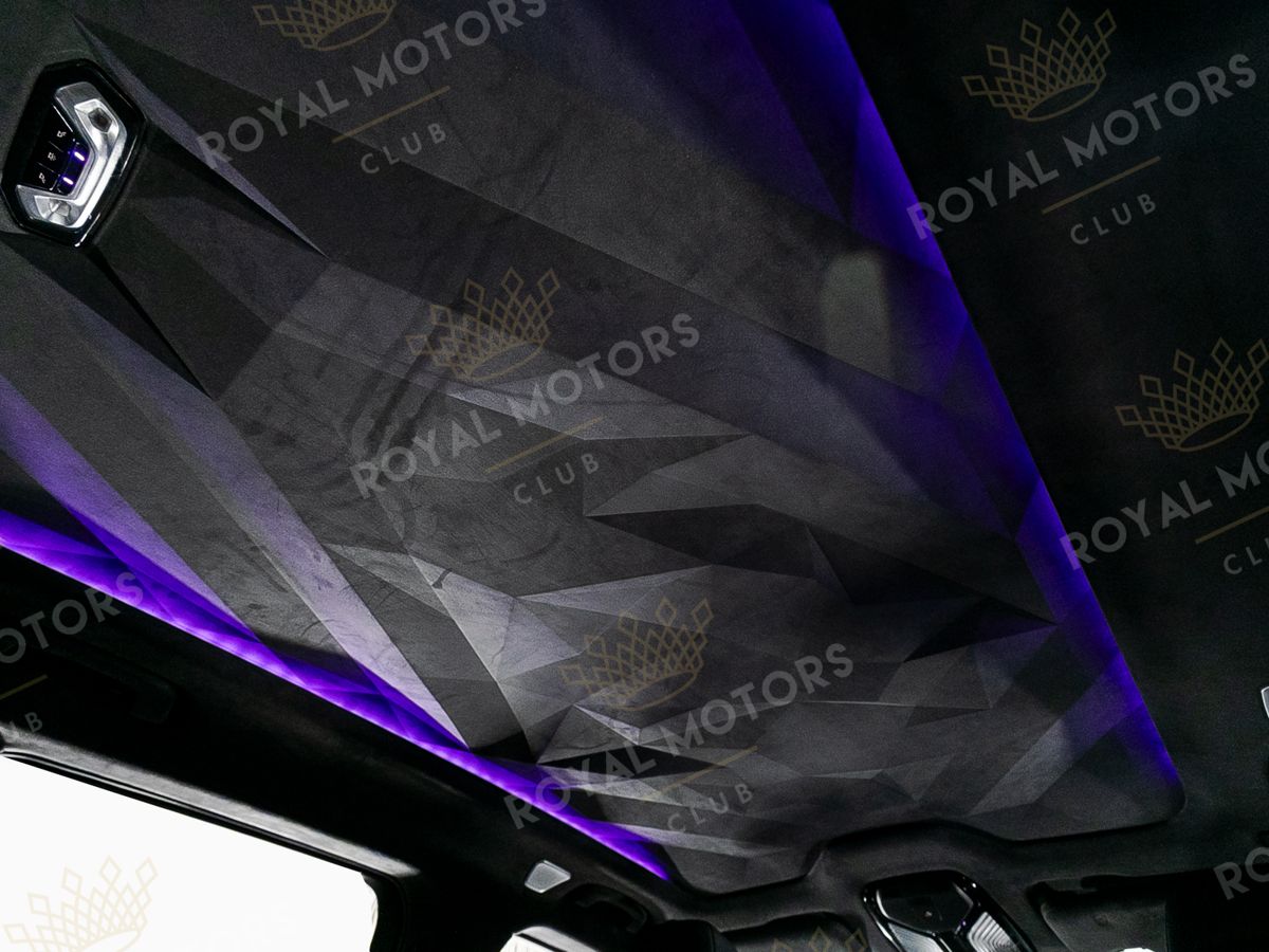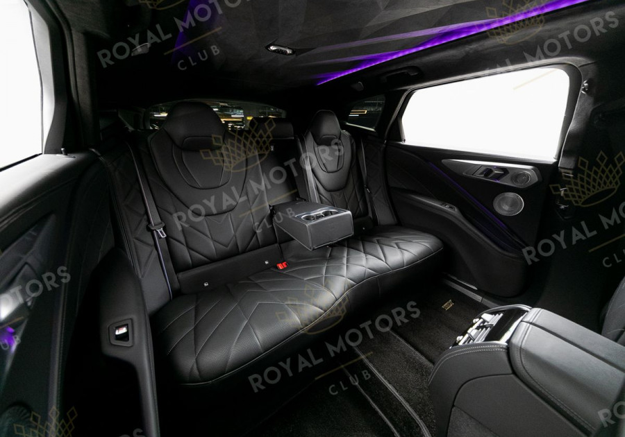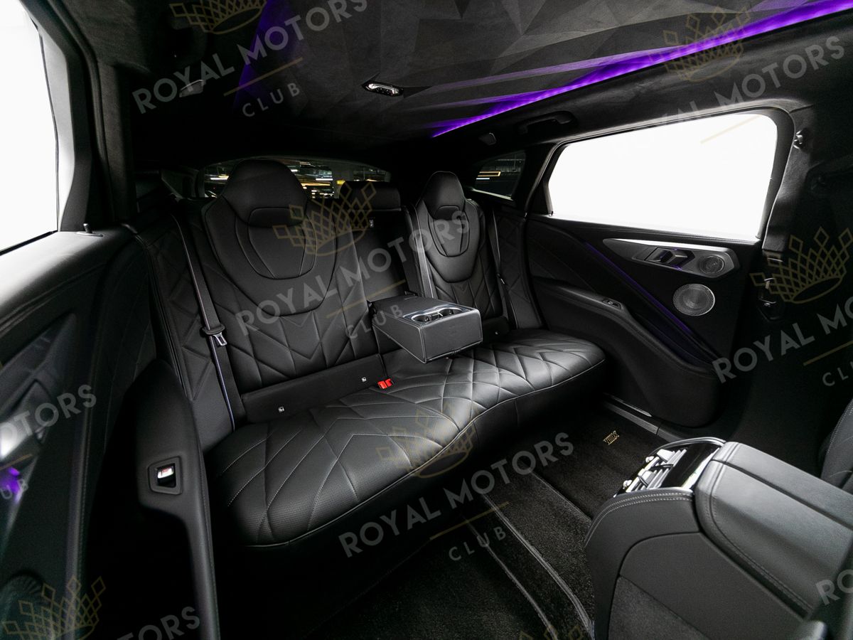 BMW продолжает серию превосходных салонов. Скульптурный потолок из алькантары с подсветкой, который добавляется современности и уникальности данному автомобилю. Стеганая строчка покрывает передние и задние сиденья, а кожа на задних сиденьях плавно переходит на дверные панели, придавая им уникальный вид.
