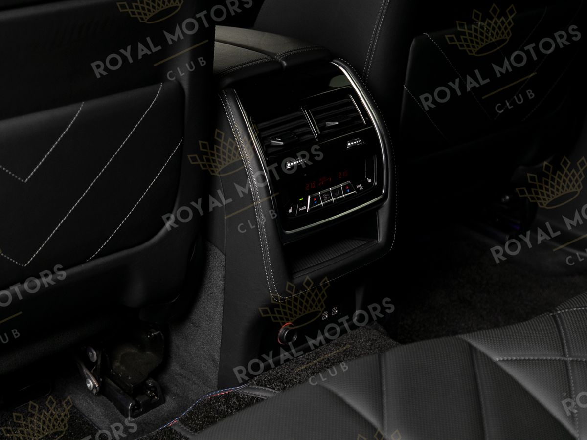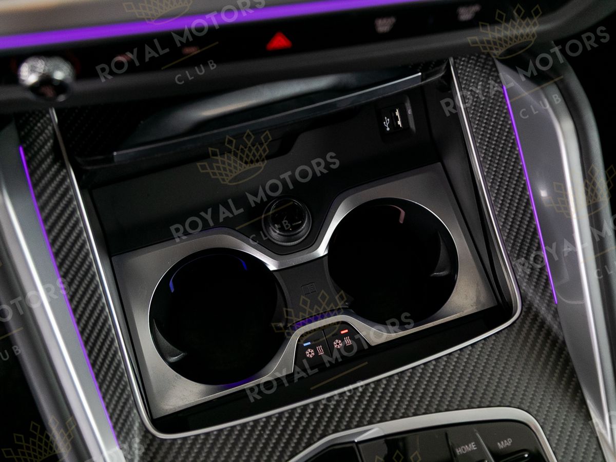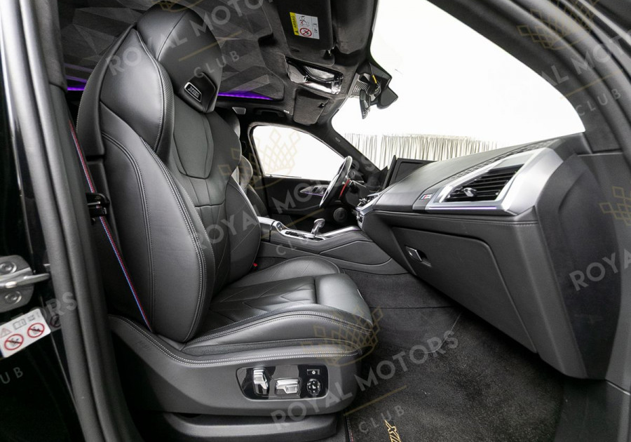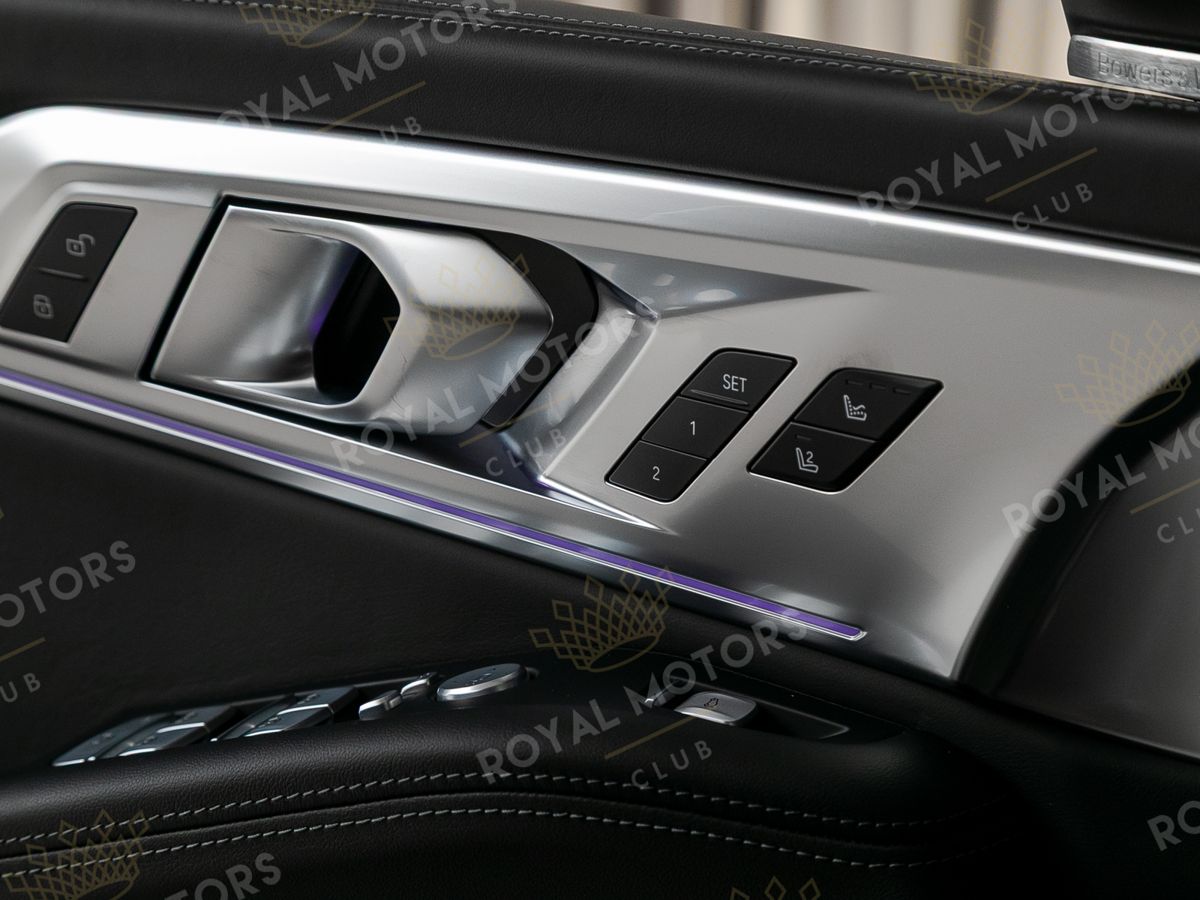 BMW продолжает серию превосходных салонов. Скульптурный потолок из алькантары с подсветкой, который добавляется современности и уникальности данному автомобилю. Стеганая строчка покрывает передние и задние сиденья, а кожа на задних сиденьях плавно переходит на дверные панели, придавая им уникальный вид.