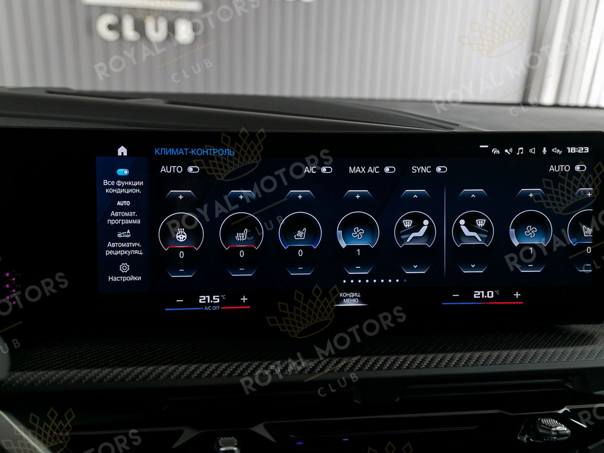 Комплектация оснащена подруливающей задней осью, карбон-пакетом интерьера, решёткой Iconic Glow, массажем/вентиляцией сидений, камерами с обзором 360, активным круиз-контролем, скульптурным потолком и премиальной аудиосистемой Bowers&Wilkins.