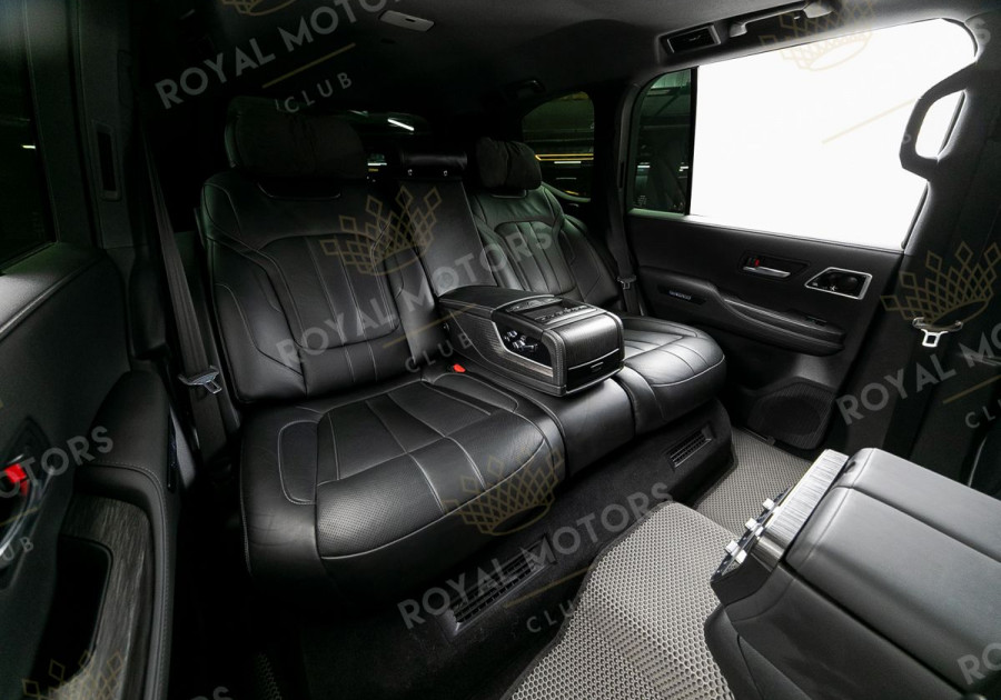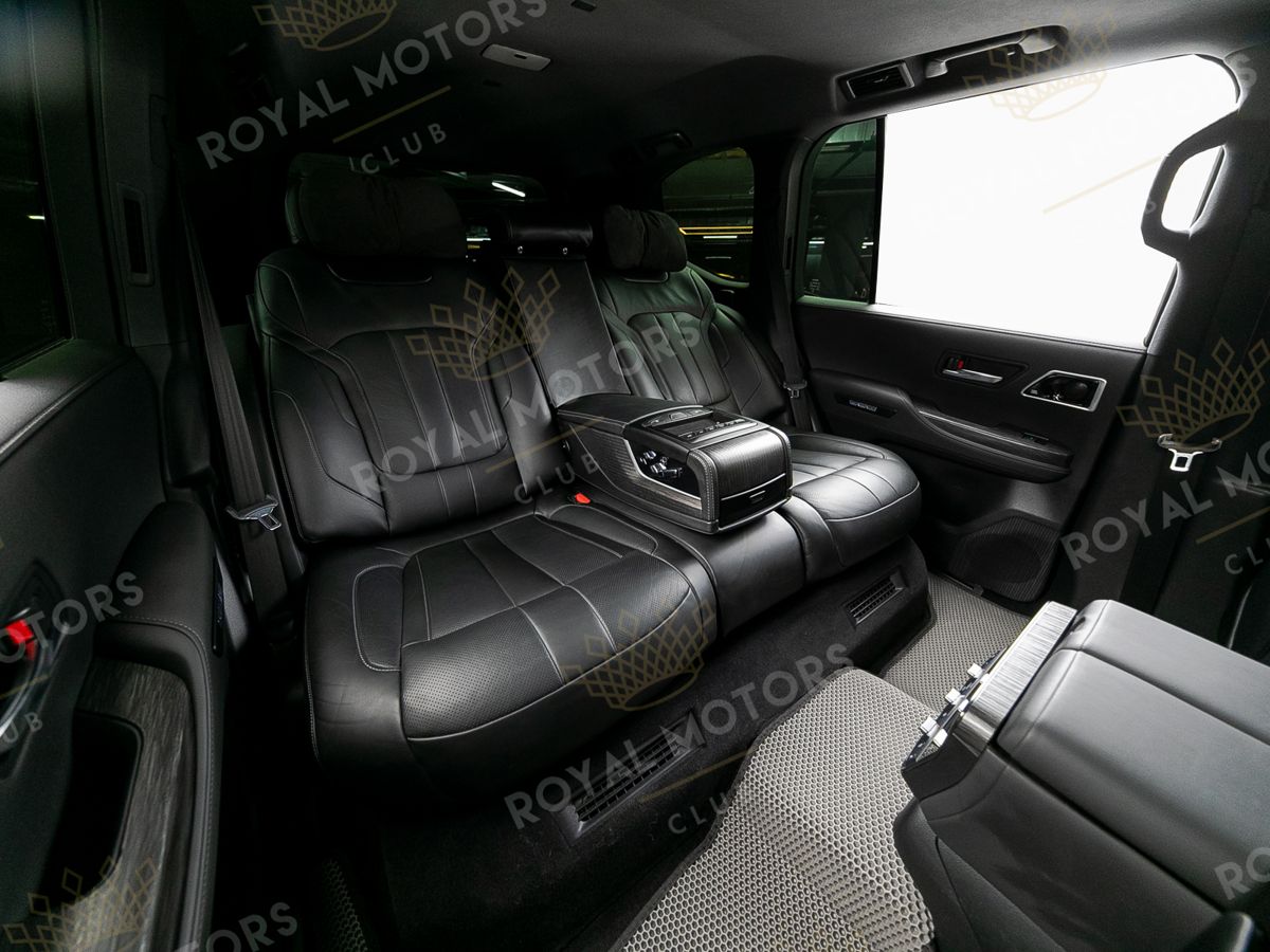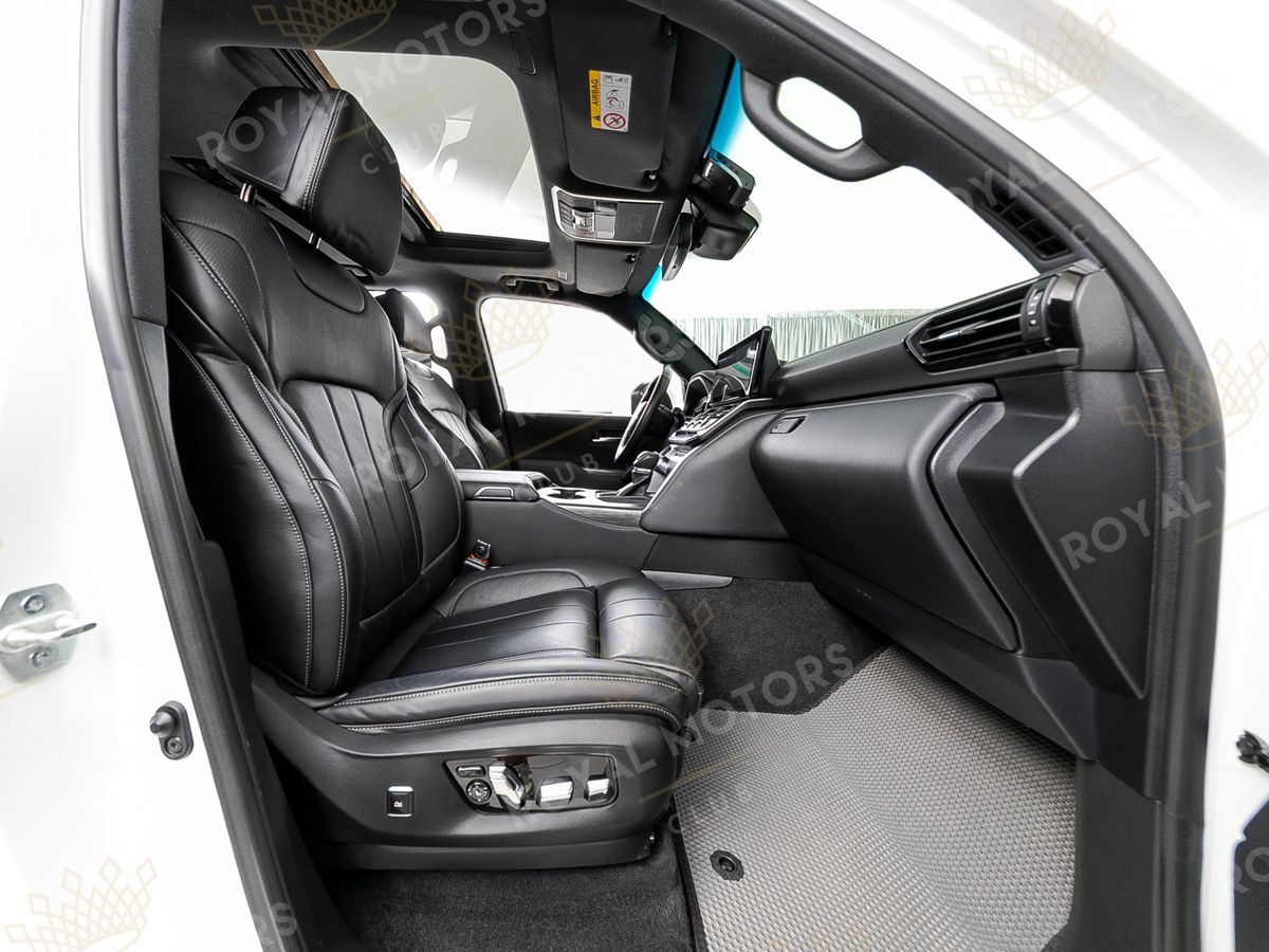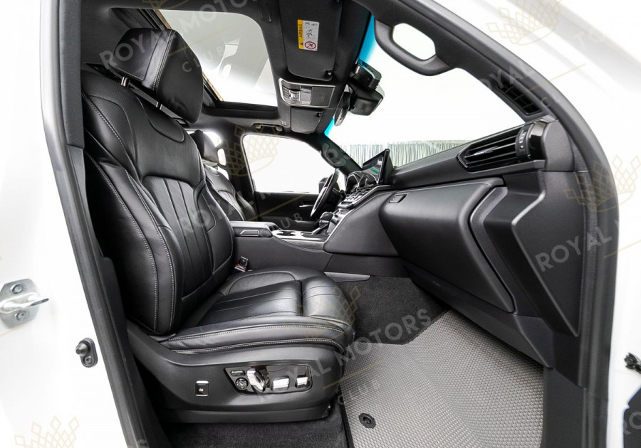Комплектация оснащена камерами с обзором 360, проекцией, адаптивным круиз-контролем, системой управления дальним светом, люком, холодильным боксом, памятью всех сидений и премиальной аудиосистемой JBL.