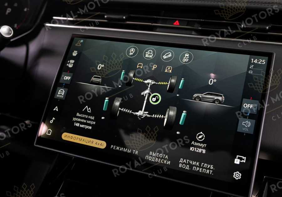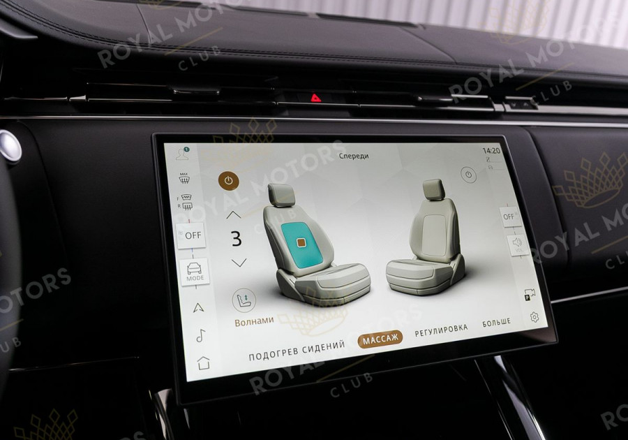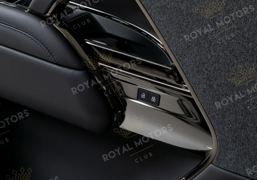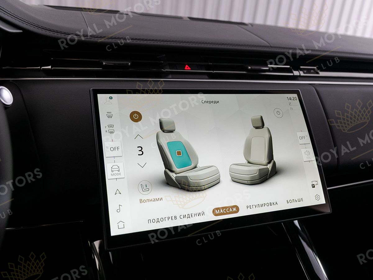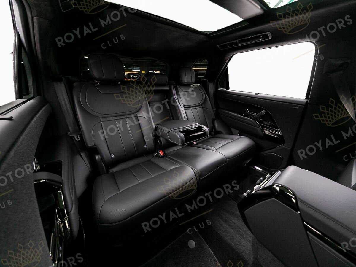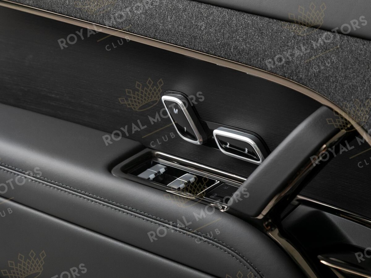 Комплектация оснащена пневматической подвеской, камерами с обзором 360, массажем/вентиляцией сидений, эл. приводом всех сидений, проекцией, солнцезащитными шторками, колёсными дисками R23, фаркопом и премиальной аудиосистемой Meridian 3D Surround.