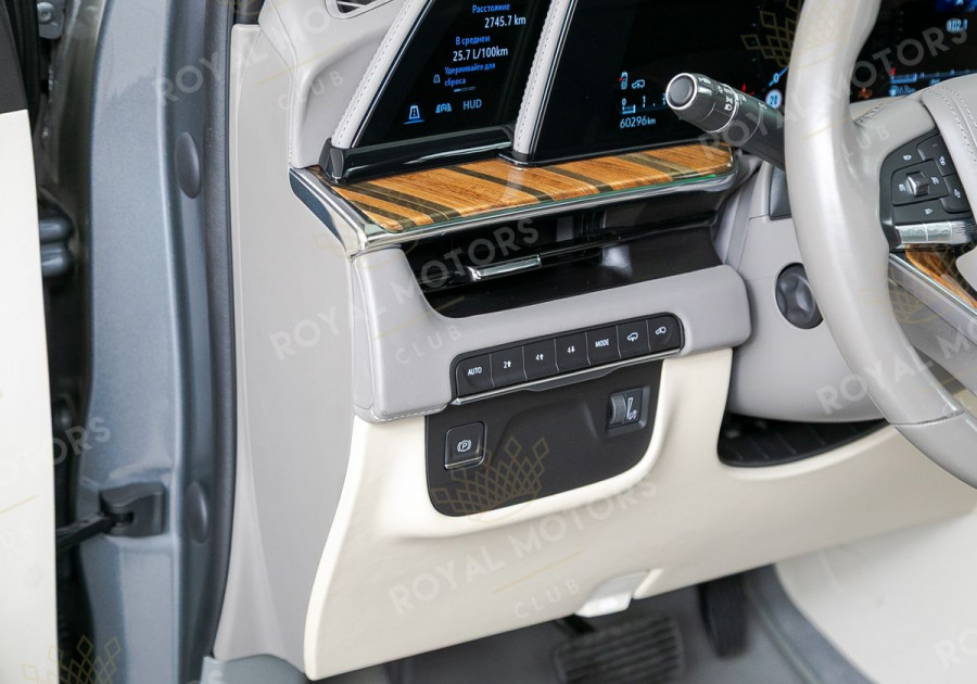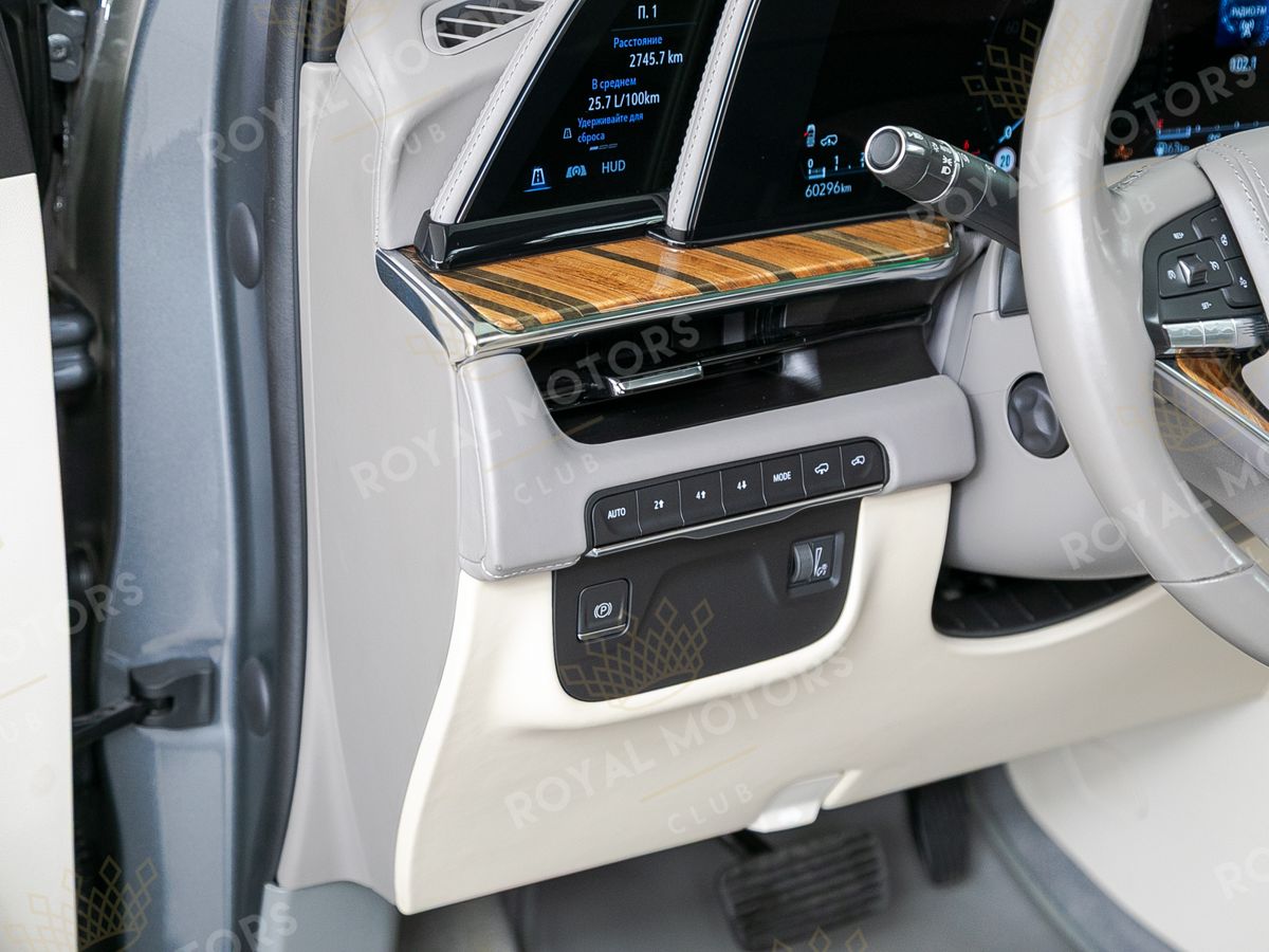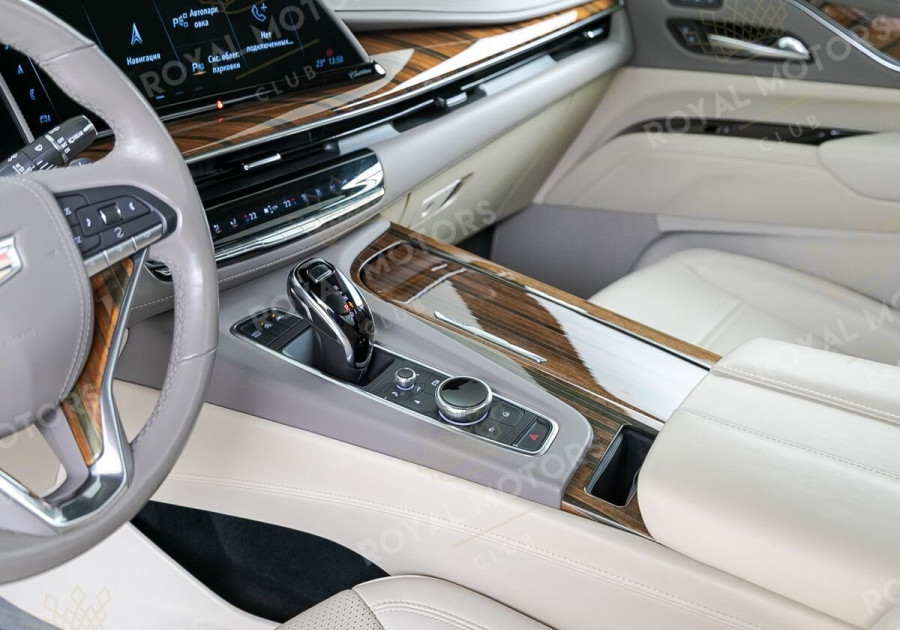 Escalade - премиальный внедорожник, под капотом которого располагается 6,2-литровый бензиновый двигатель мощностью 416 л.с. Автомобиль оснащён системой полного привода.
