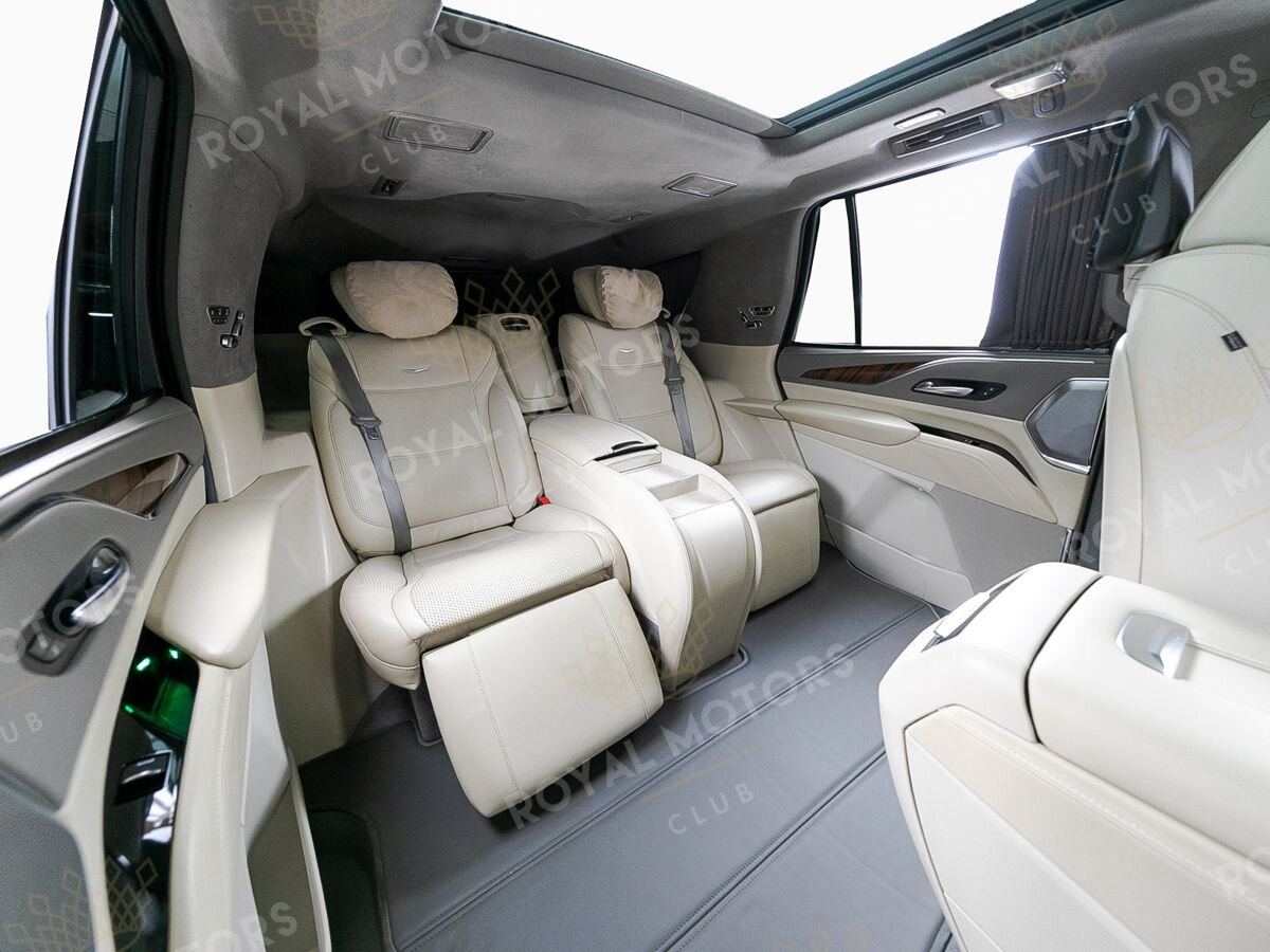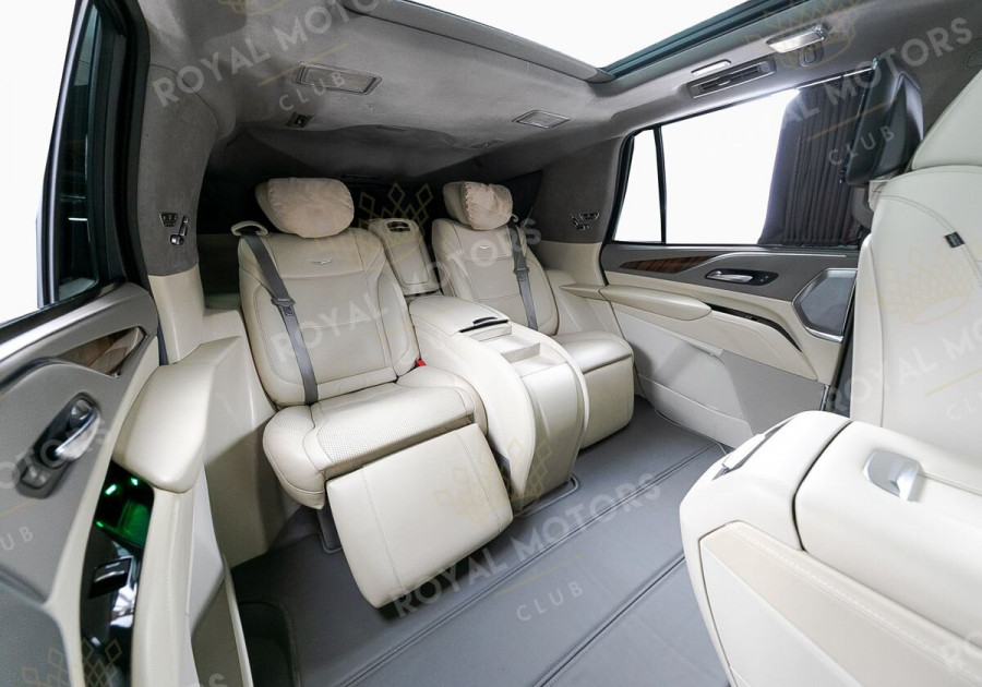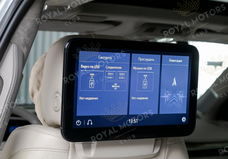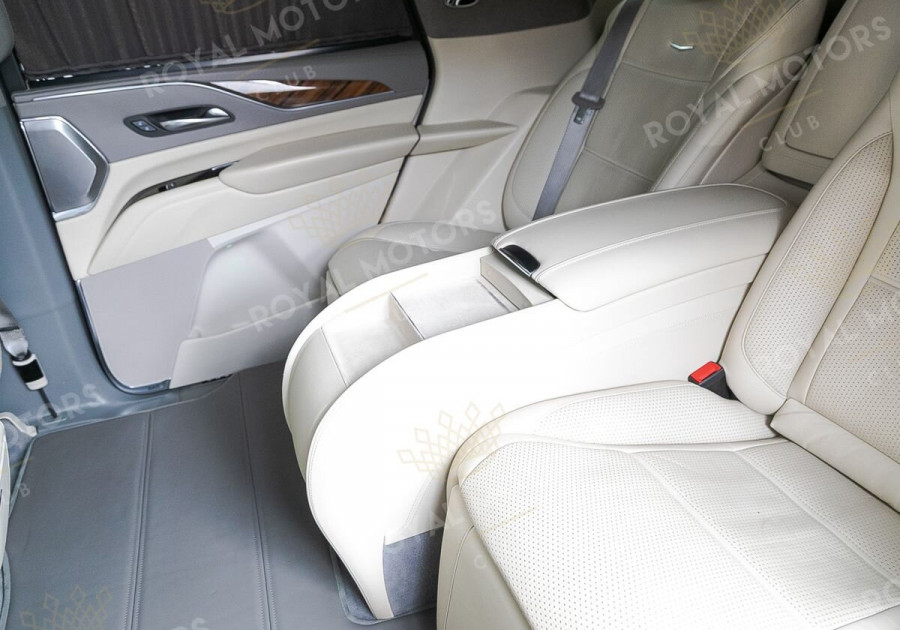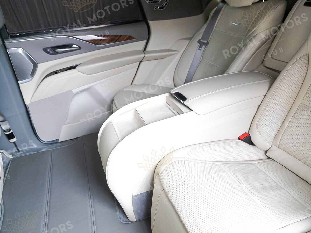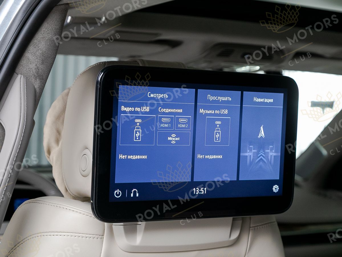 Установлены капитанские сиденья заднего ряда, оснащённые системой оттоман, дополнительными подушками, вентиляцией и памятью положения. Работы выполнялись в тюнинг-ателье А1.