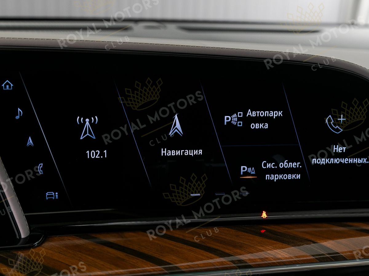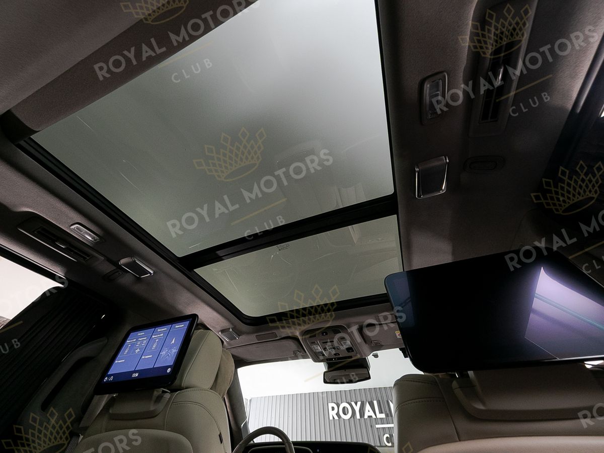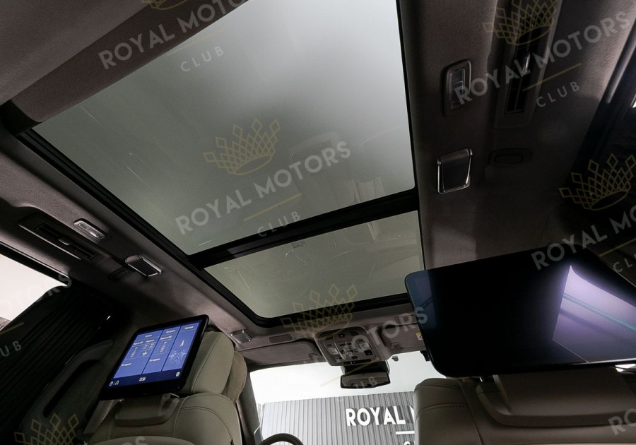 Комплектация оснащена пневматической подвеской, выдвижными порогами с эл. приводом, камерами с обзором 360, массажем/вентиляцией сидений, мониторами в спинках передних сидений, системой ночного видения, проекцией, солнцезащитные шторки и максимальной аудиосистемой AKG.