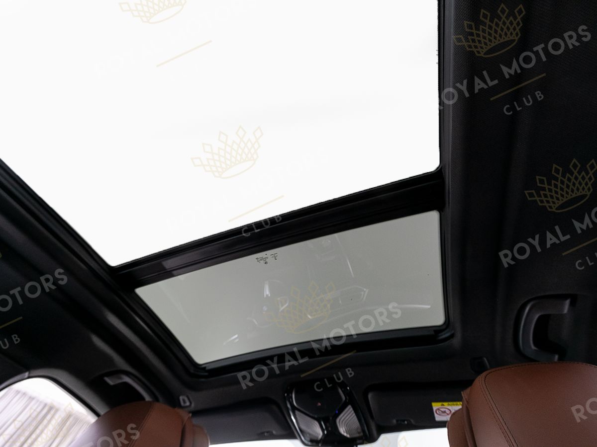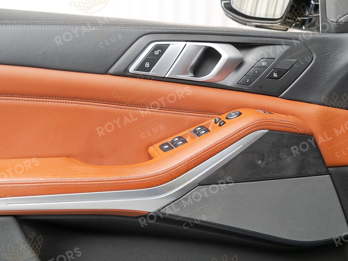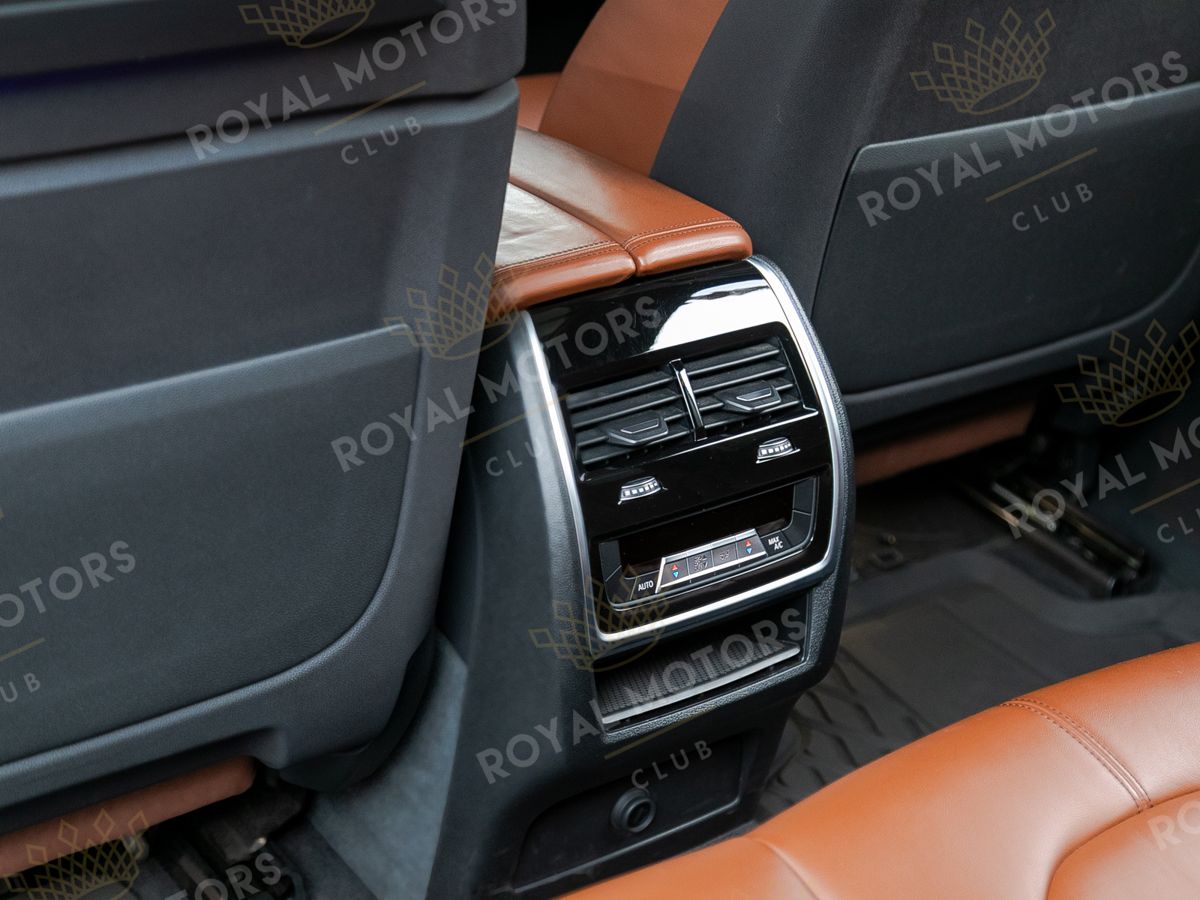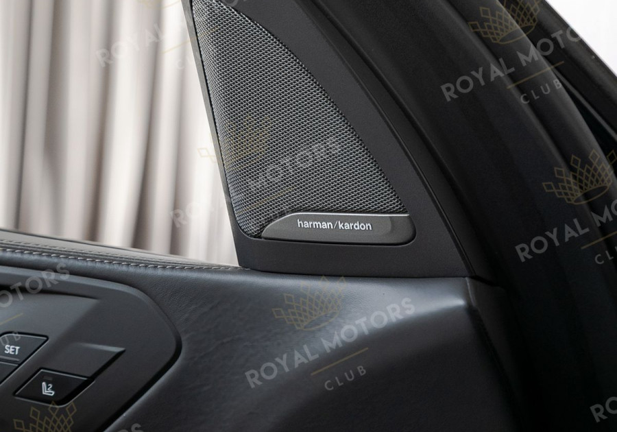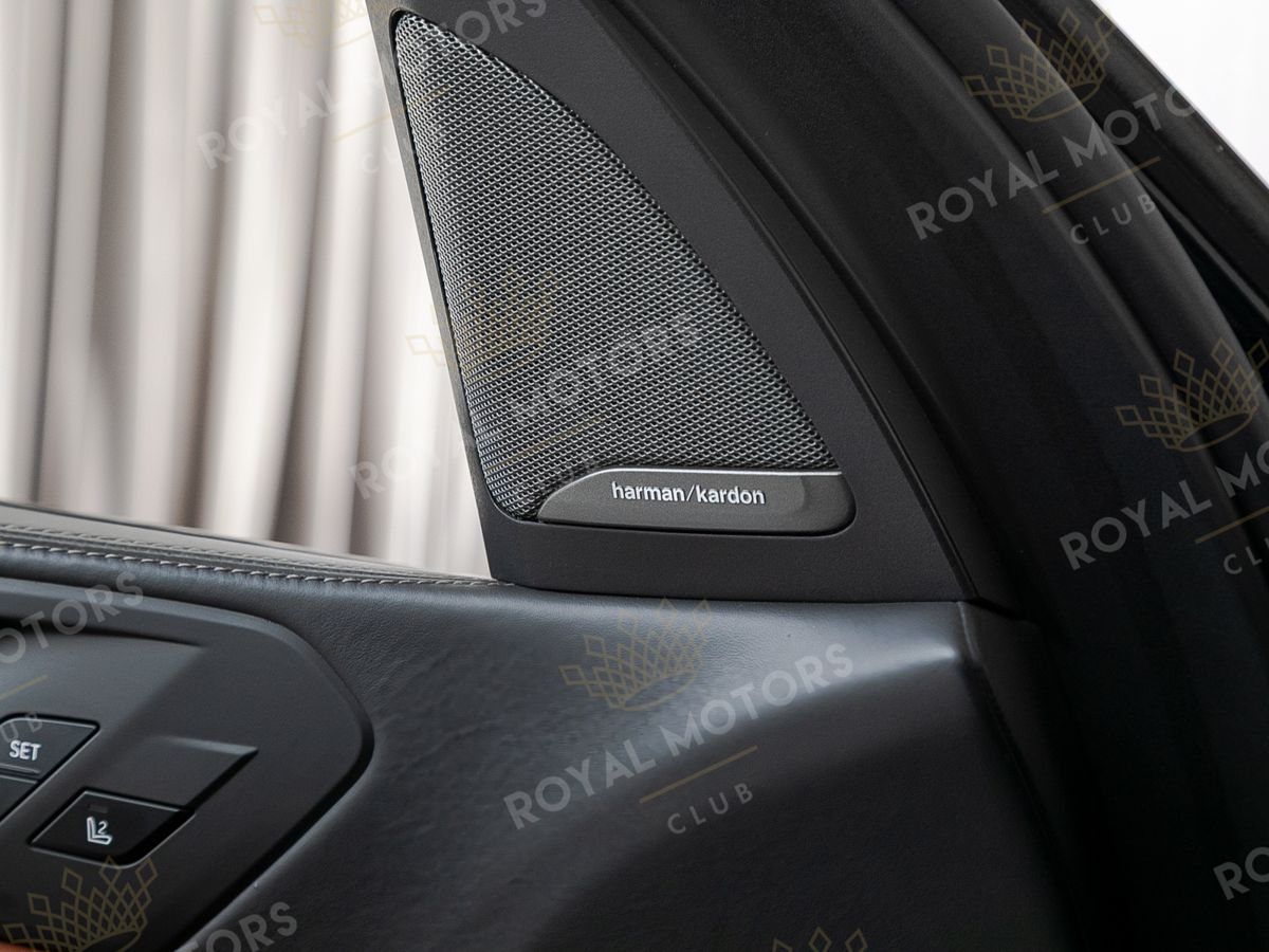 Комплектация оснащена подруливающей задней осью, камерами с обзором 360, фарами BMW Laser, вентиляцией сидений, проекцией, доводчиками, 4-зонным климат-контролем, отделкой рычага КПП из хрусталя, панорамой и премиальной аудиосистемой harman/kardon.