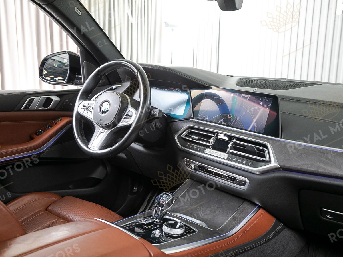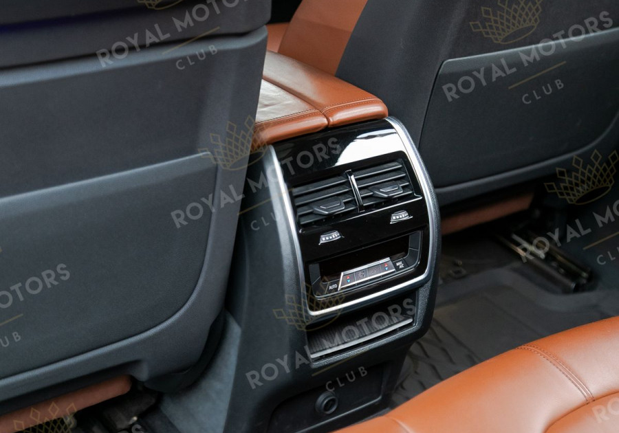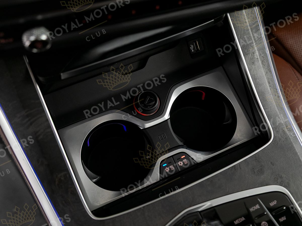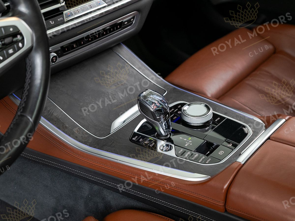 Комплектация оснащена подруливающей задней осью, камерами с обзором 360, фарами BMW Laser, вентиляцией сидений, проекцией, доводчиками, 4-зонным климат-контролем, отделкой рычага КПП из хрусталя, панорамой и премиальной аудиосистемой harman/kardon.