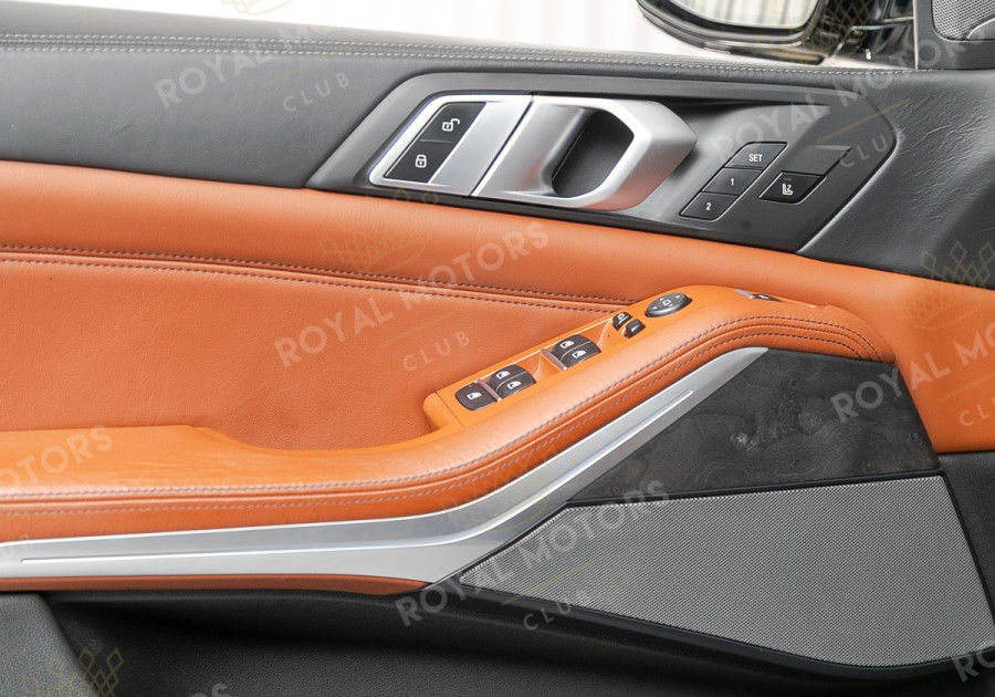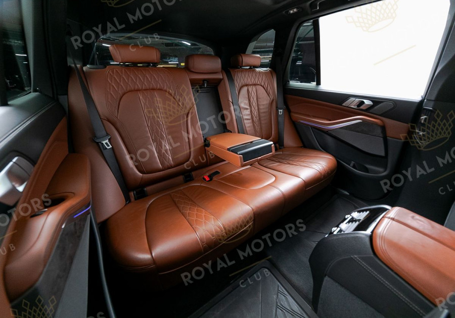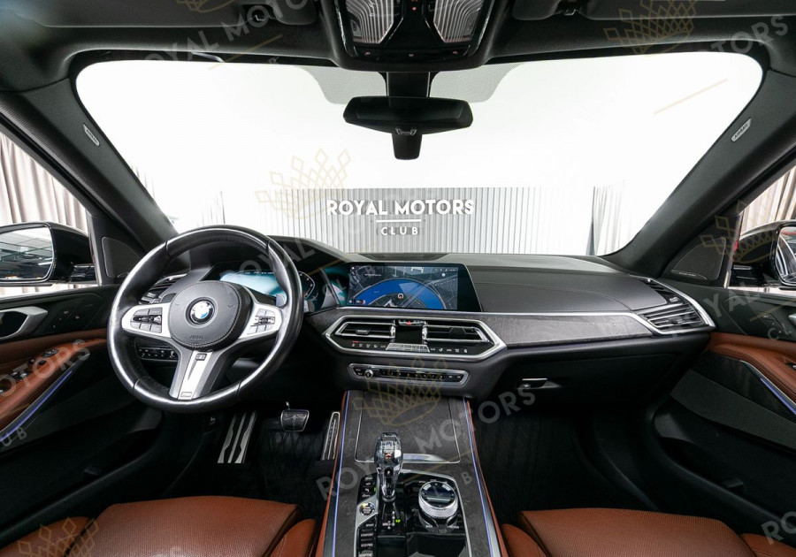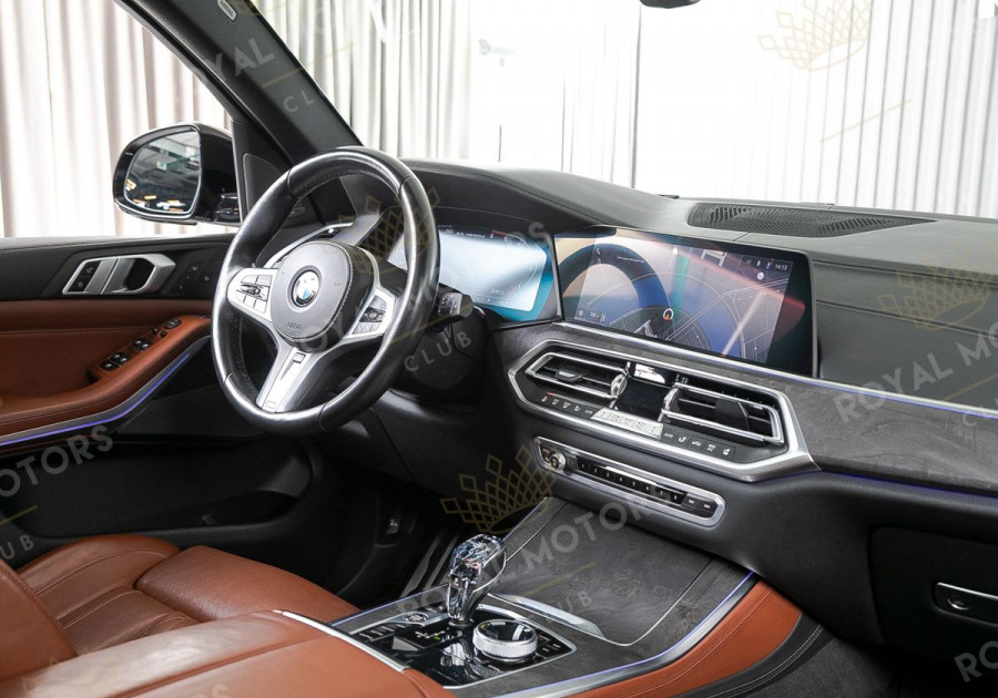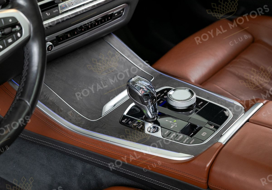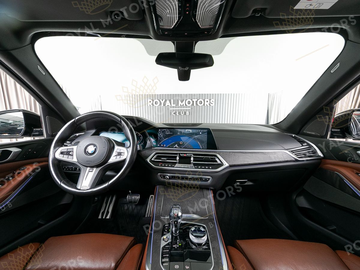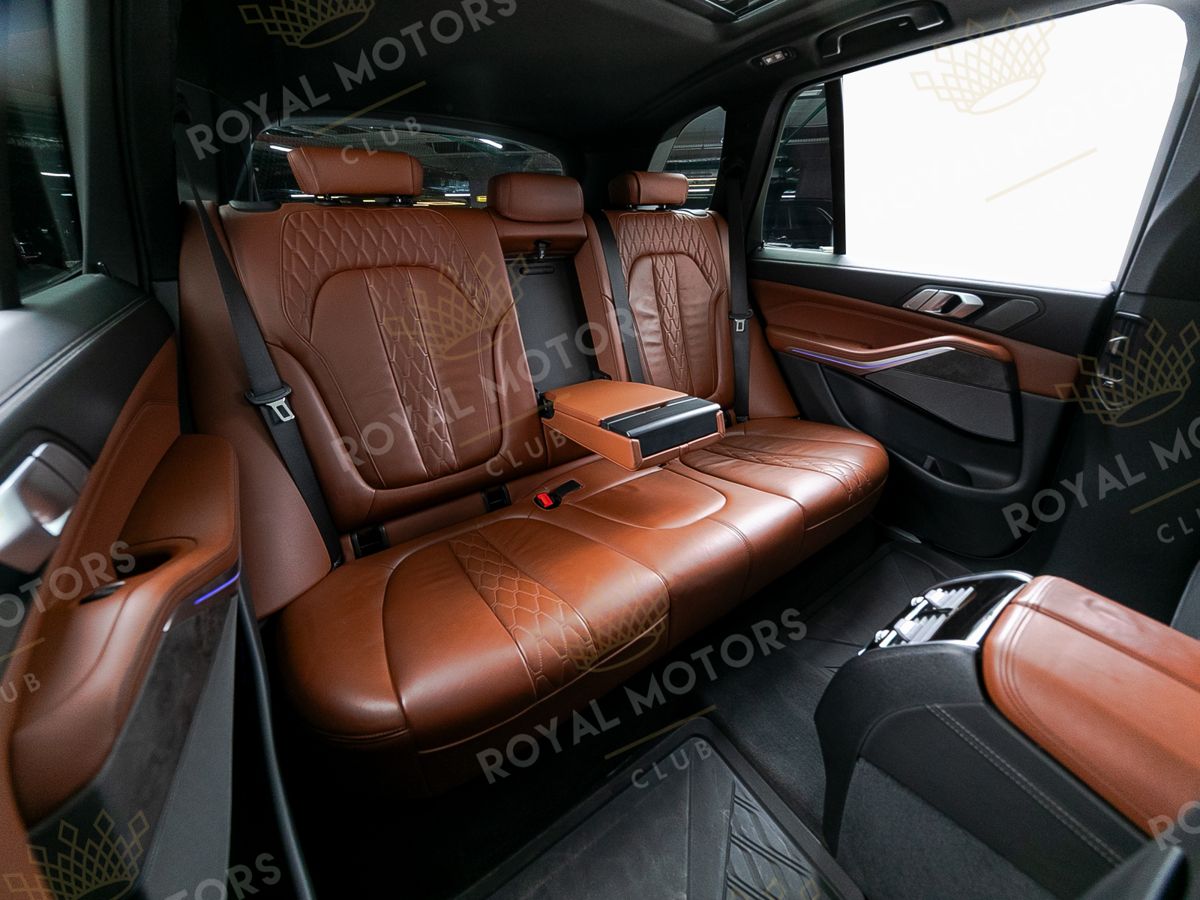 Комплектация оснащена подруливающей задней осью, камерами с обзором 360, фарами BMW Laser, вентиляцией сидений, проекцией, доводчиками, 4-зонным климат-контролем, отделкой рычага КПП из хрусталя, панорамой и премиальной аудиосистемой harman/kardon.