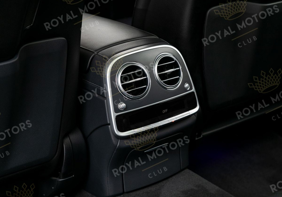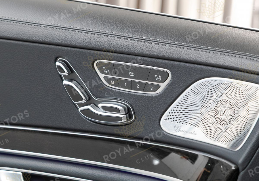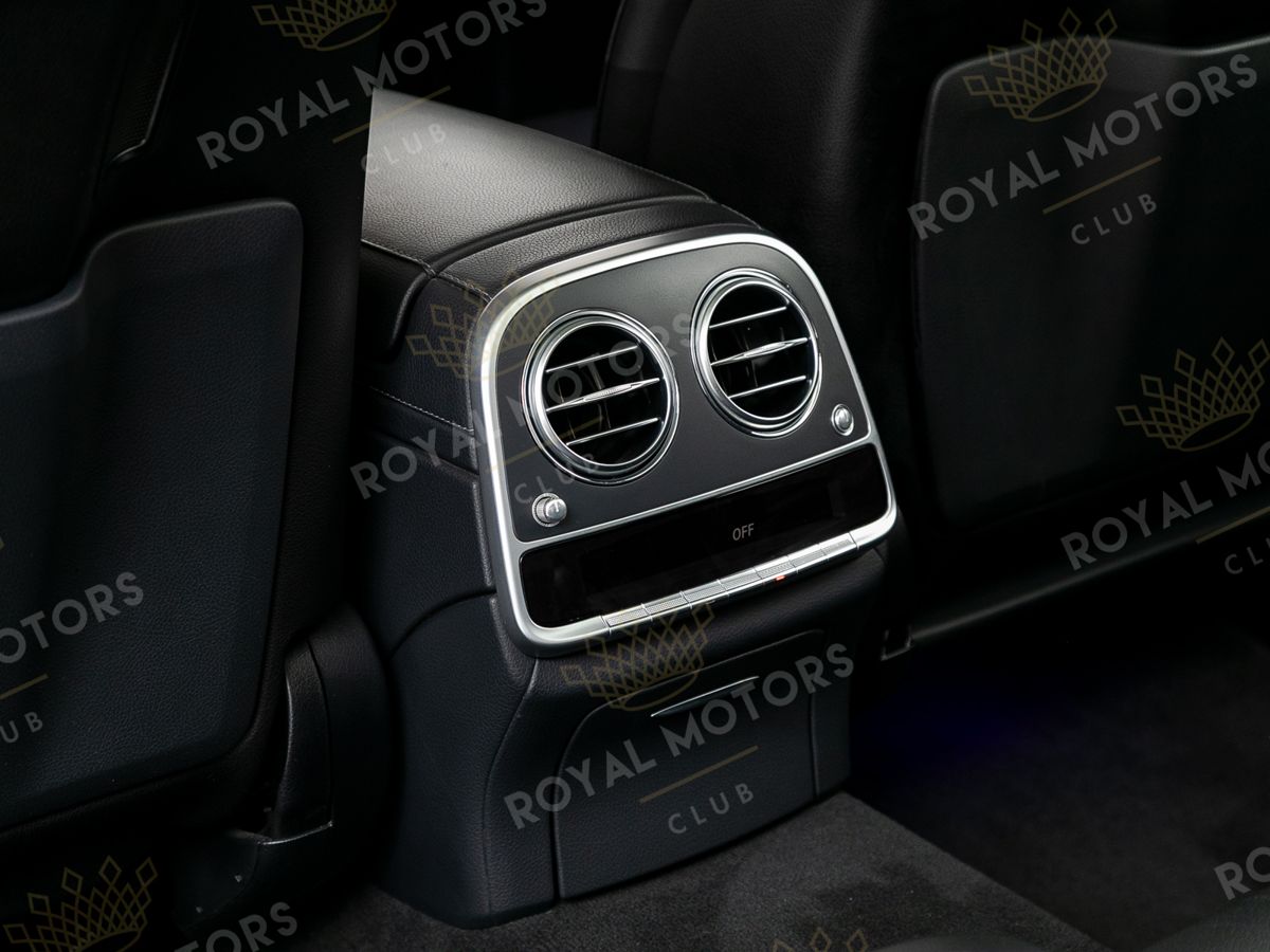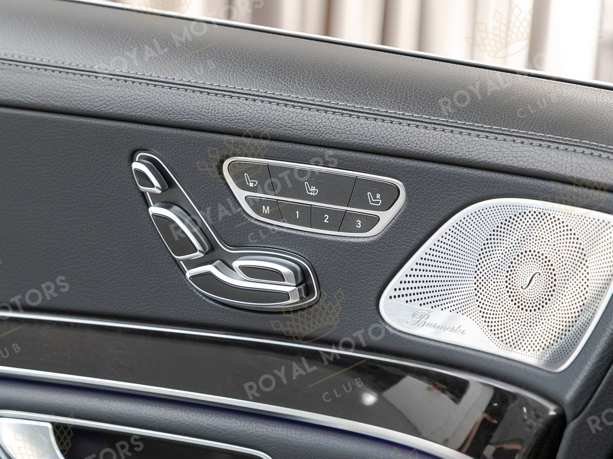 Комплектация оснащена пневматической подвеской, камерами с обзором 360, вентиляцией сидений, системой оттоман сиденья, Intelligent Light System, солнцезащитными шторками, панорамой и премиальной аудиосистемой Burmester.