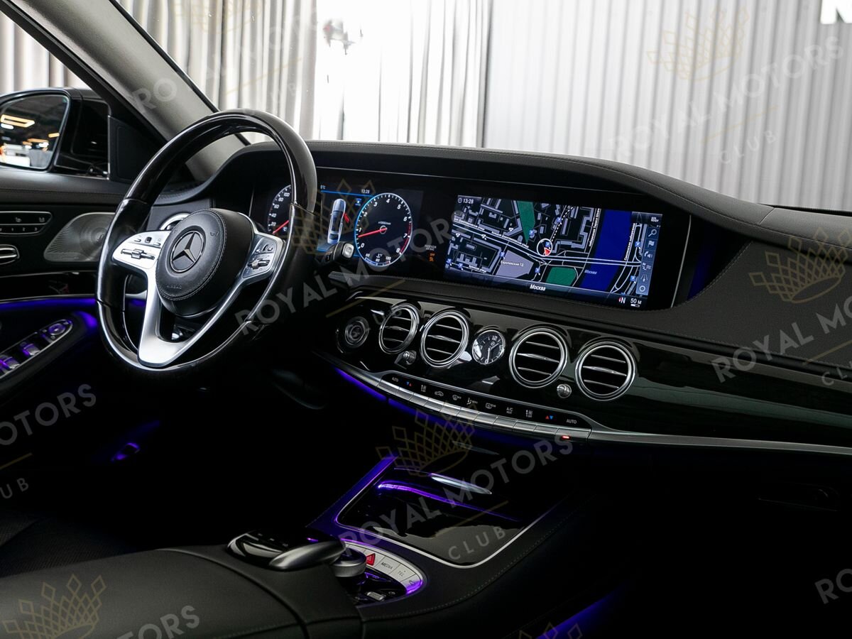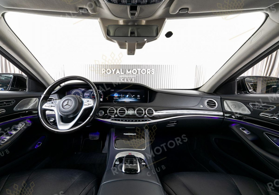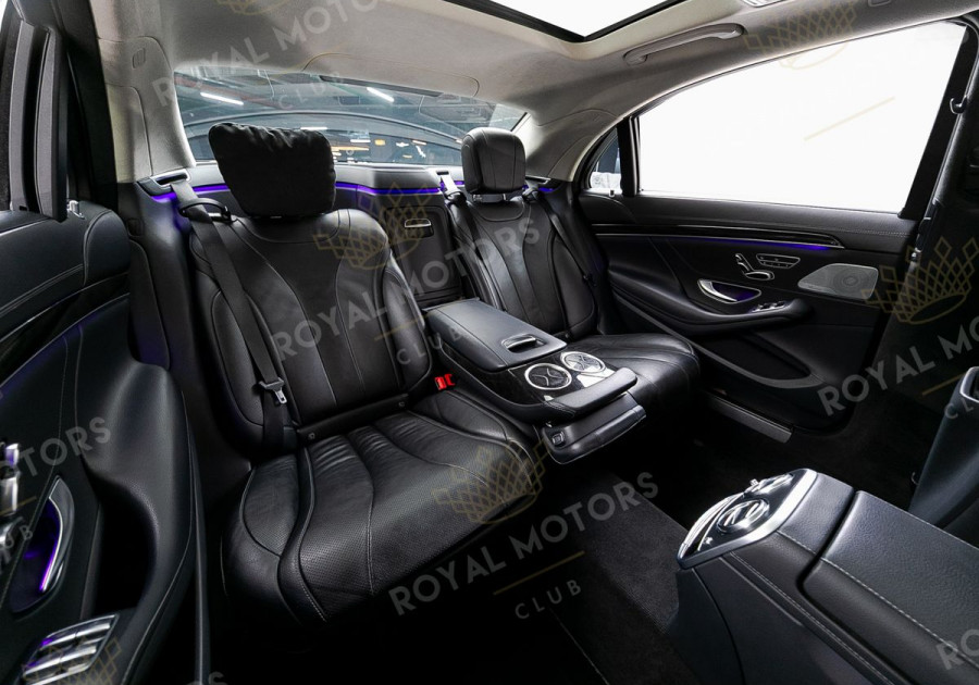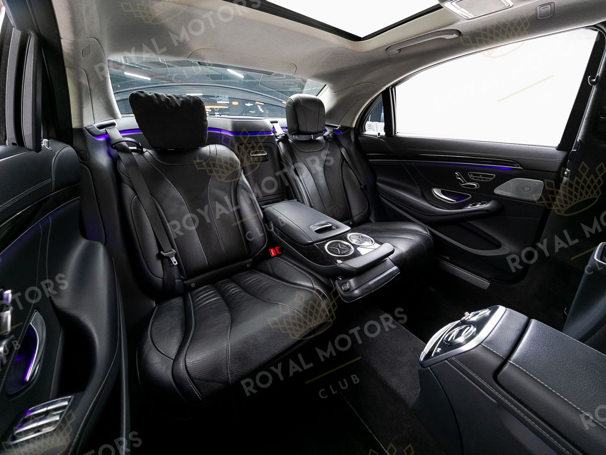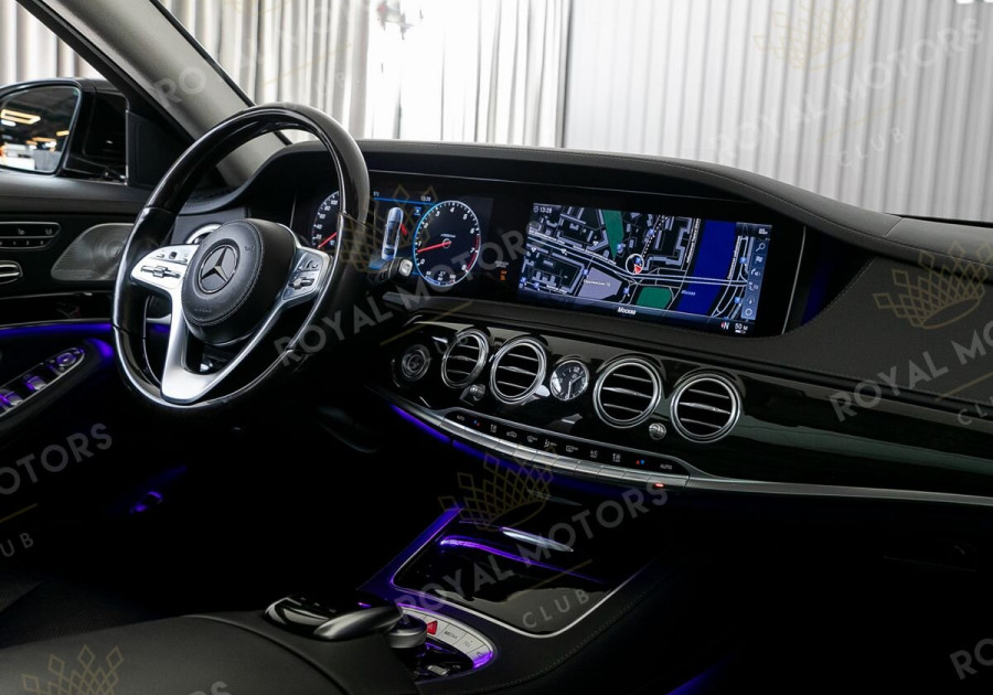 Комплектация оснащена пневматической подвеской, камерами с обзором 360, вентиляцией сидений, системой оттоман сиденья, Intelligent Light System, солнцезащитными шторками, панорамой и премиальной аудиосистемой Burmester.