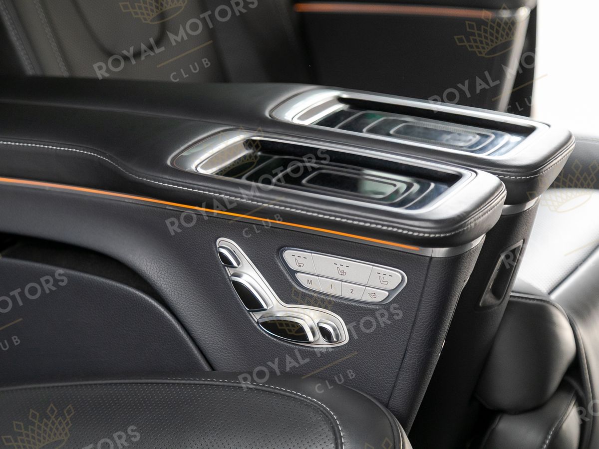 Комплектация оснащена AMG Line, капитанскими сиденьями с системой оттоман, камерами с обзором 360, массажем/вентиляцией сидений, адаптивным круиз-контролем, Intelligent Light System и премиальной аудиосистемой Burmester.