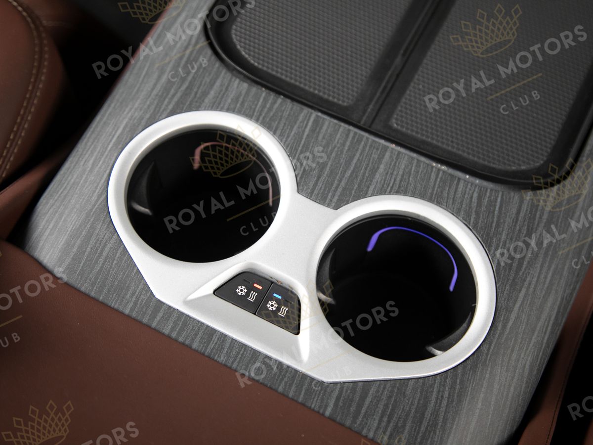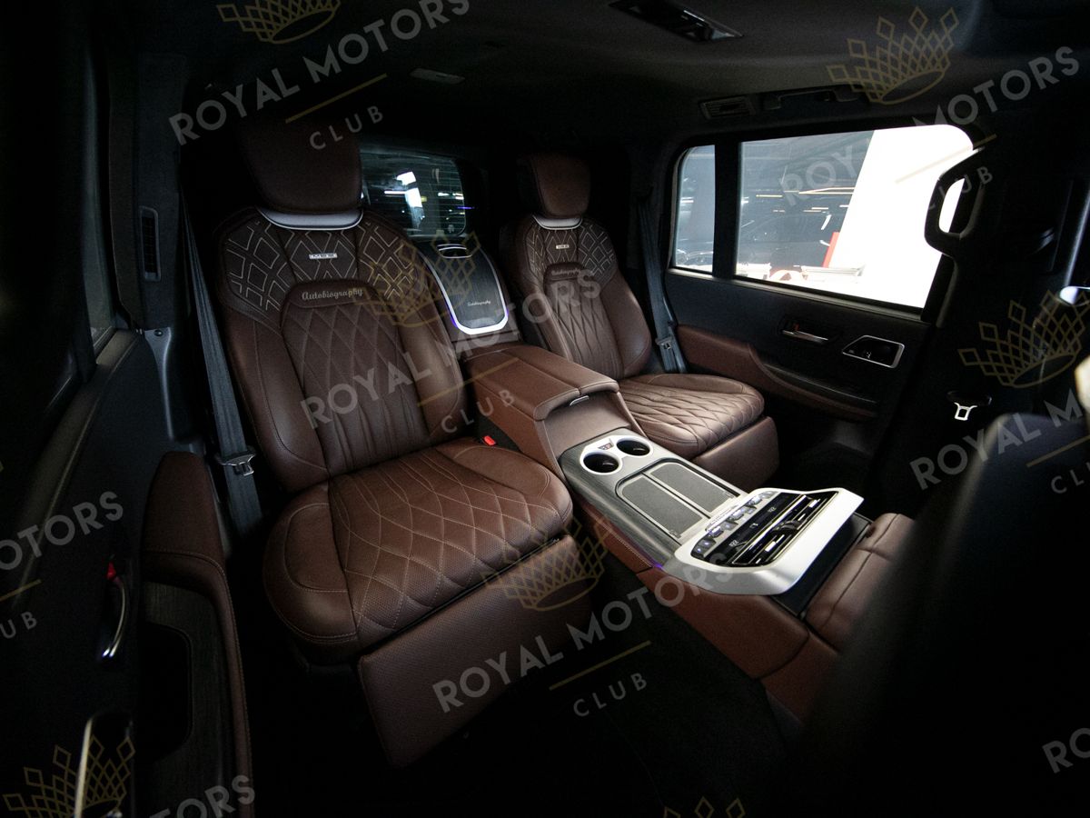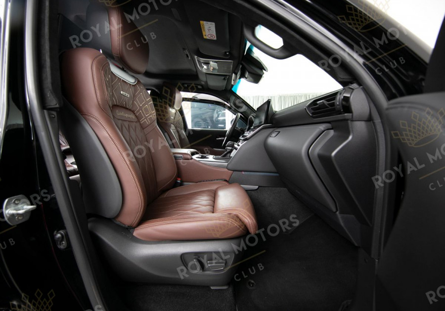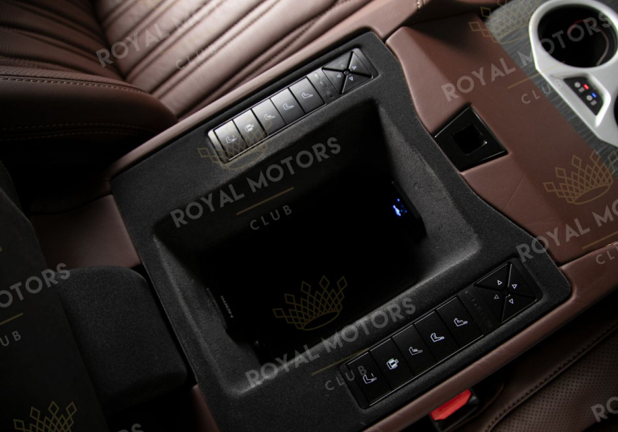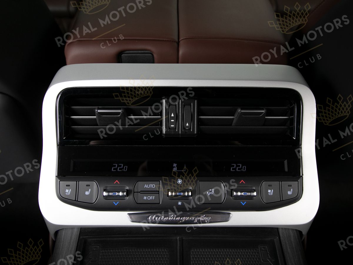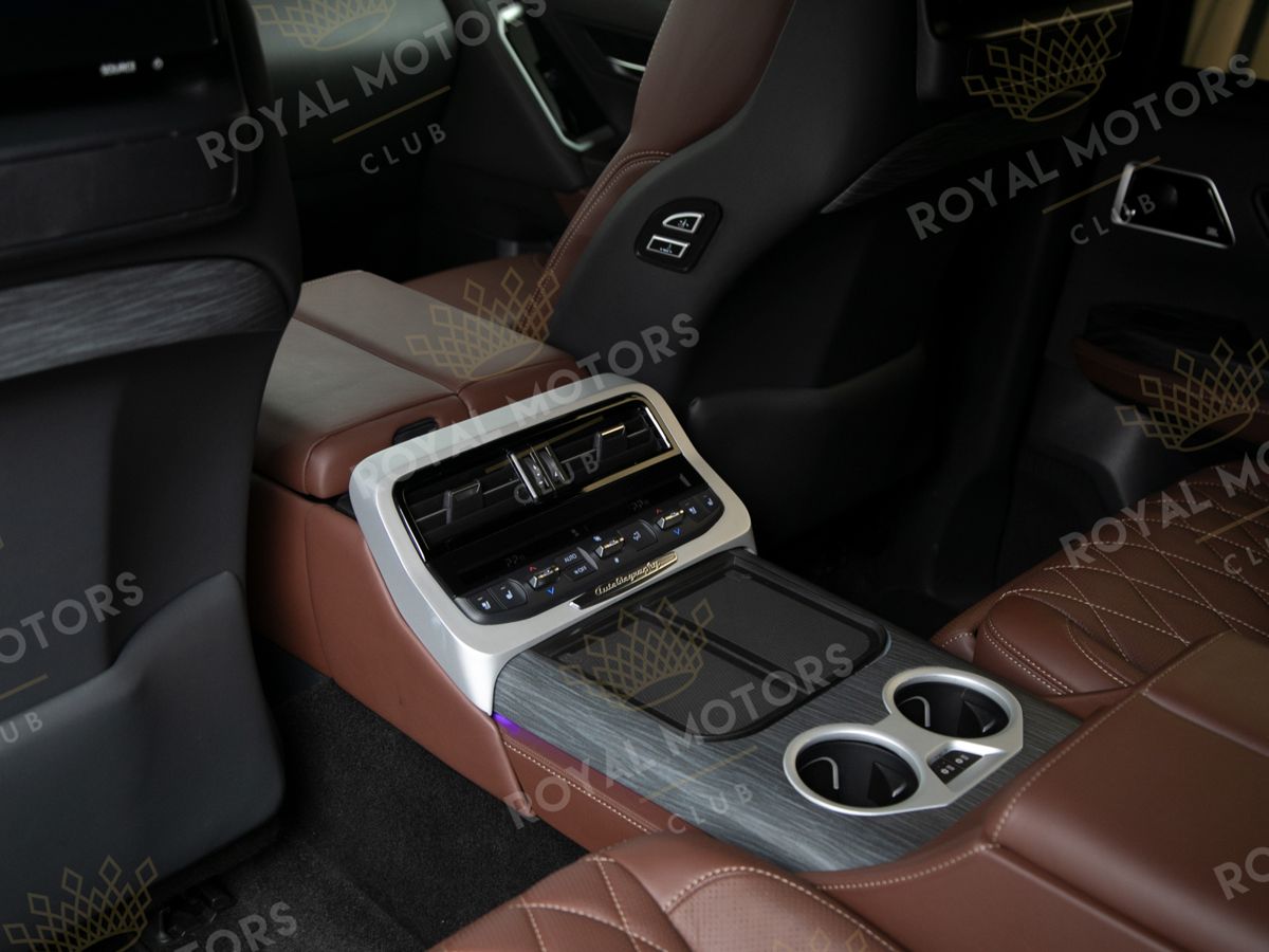 Комплектация оснащена камерами с обзором 360, массажем/вентиляцией сидений, системой оттоман сидений, мониторами в спинках передних сидений, адаптивным круиз-контролем, холодильным боксом, доводчиками и премиальной аудиосистемой JBL.