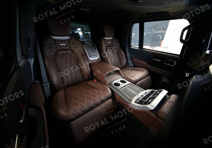 Установлен премиальный салон с задним рядом First Class (капитанские сиденья).