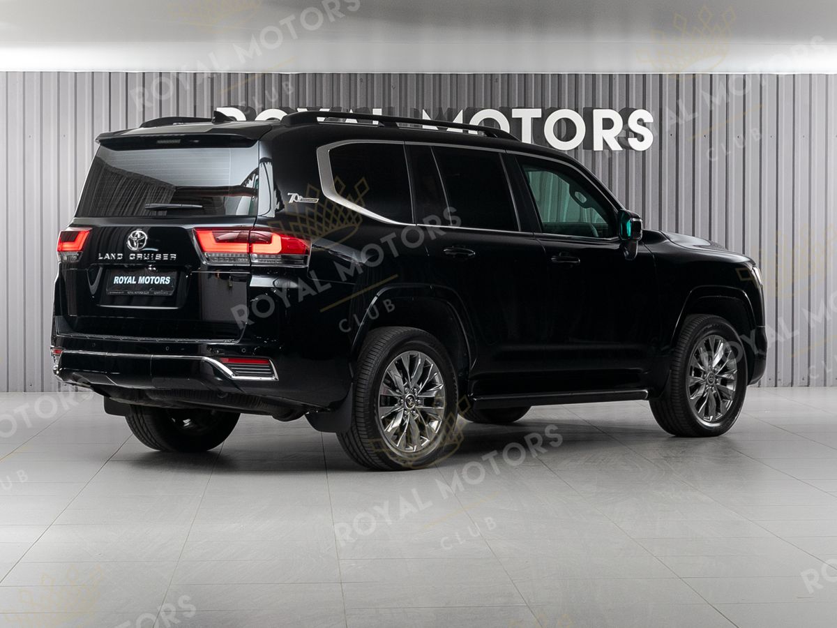 Внешне Toyota Land Cruiser 70th Anniversary отличается от прочих комплектаций чёрным наружным декором (решётка радиатора, оконные молдинги, корпуса зеркал и рейлинги) и логотипами спецверсии.